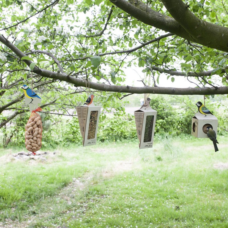 Madár mintás, felakasztható etető, önadagolóval. Az egyre szárazabb nyarakon és zordabb teleken az állatok egyre kevesebb élelmet és vizet találnak, amin egy kis odafigyeléssen változtathatunk. A madárdekoráció anyaga papír.