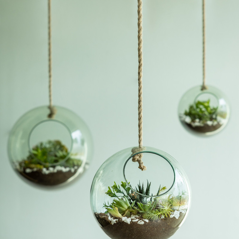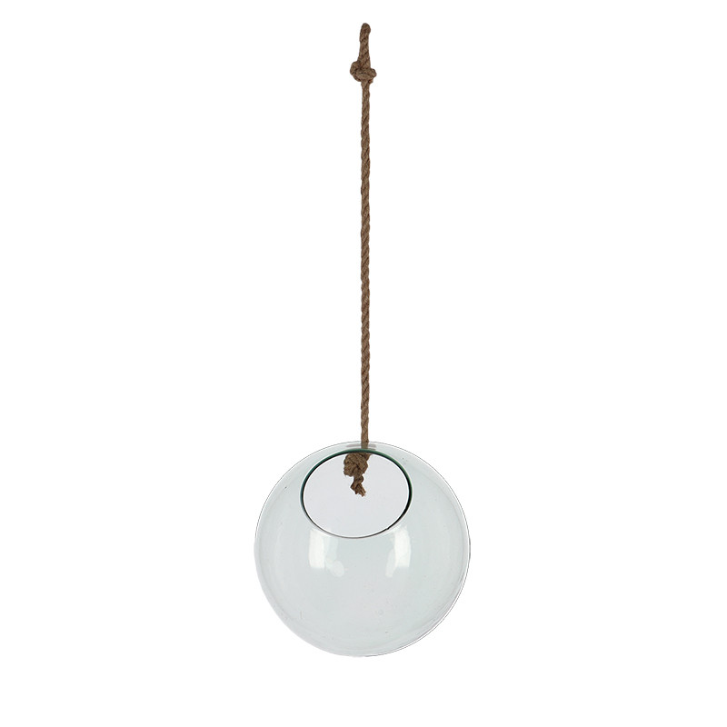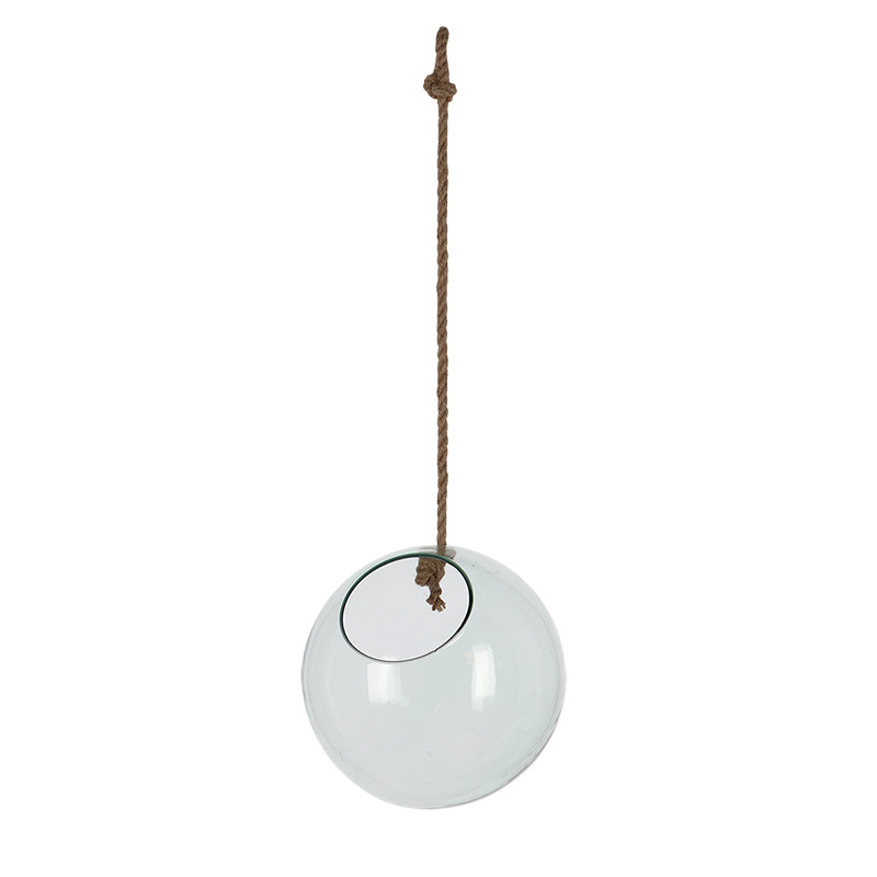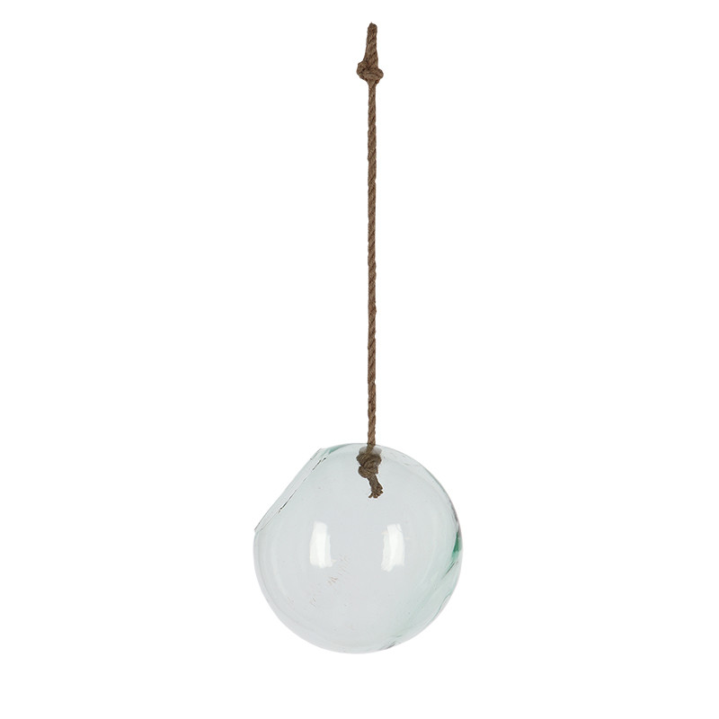 Felakasztható virágtartó üveggömb, 20 cm átmérővel. Ebben az újrahasznosított üvegből készült különleges virágtartóban tökéletesen mutatnak a konyhai fűszernövények és a dísznövények egyaránt. Segítségével bármelyik helyiségbe hamisítatlan városi dzsungel stílust varázsolhatunk. A széles nyílásnak köszönhetően a növények könnyedén behelyezhetőek, és a gondozásuk, fejlődésük sem okoz problémát.