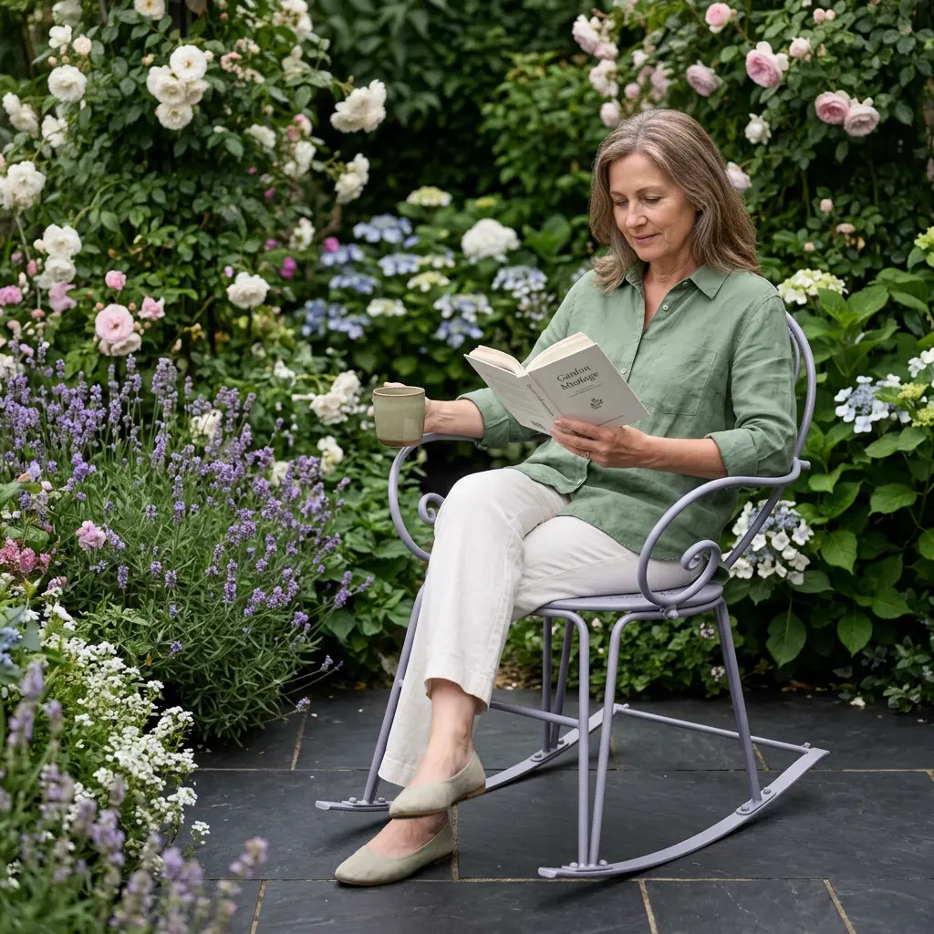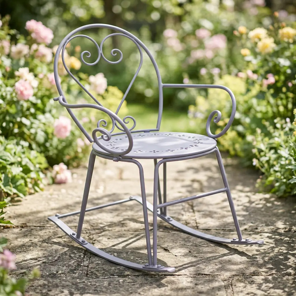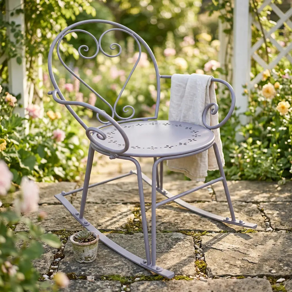 A masszív fém konstrukcióval készült hintaszék tökéletes egyensúlyt biztosít a stílus, stabilitás és kényelem között. Az enyhe hintázó mozgás és a támogató karfák pihenésre csábítanak, így ideális választás a teraszon, a kertben vagy a verandán való relaxáláshoz. A funkcionalitást és esztétikát ötvöző hintaszék eleganciát és nyugalmat hoz a kültéri térbe.