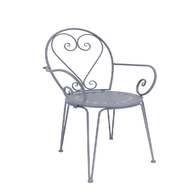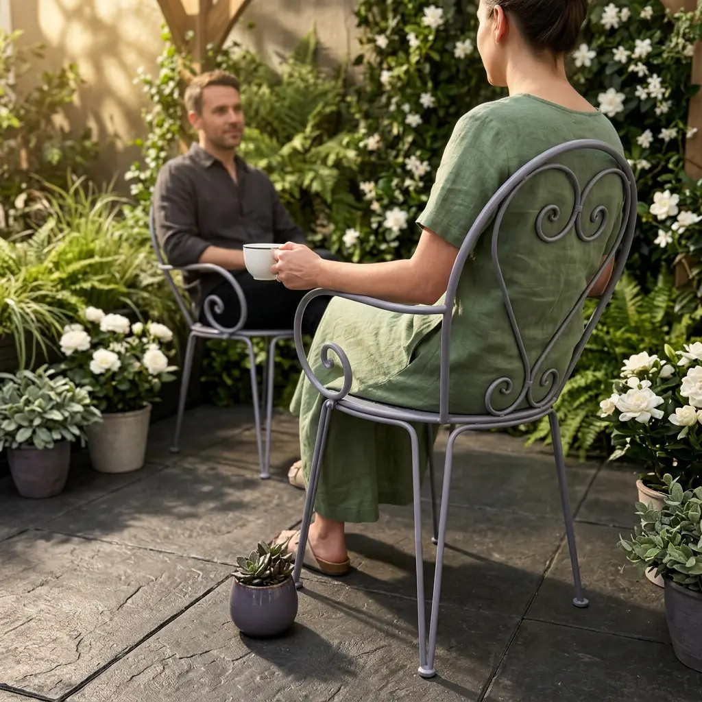 Tedd varázslatossá kertedet ezzel az elegáns kovácsoltvas kerti székkel, amely kényelmes karfáival és a hátámláján lévő gyönyörű, ívelt szív motívumával igazi nosztalgikus bájt csempész a kültéri térbe. Ez az időtlen dizájn a francia stílust idézi, romantikus és autentikus hangulatot teremtve bármely kertben vagy teraszon.
