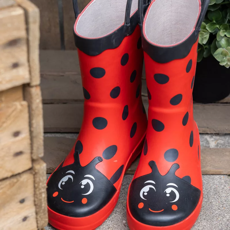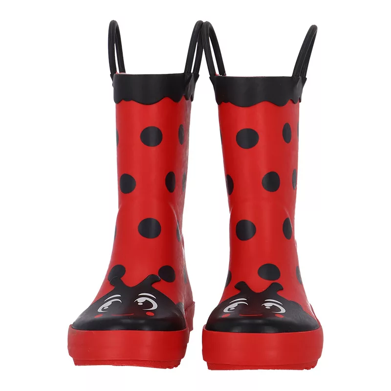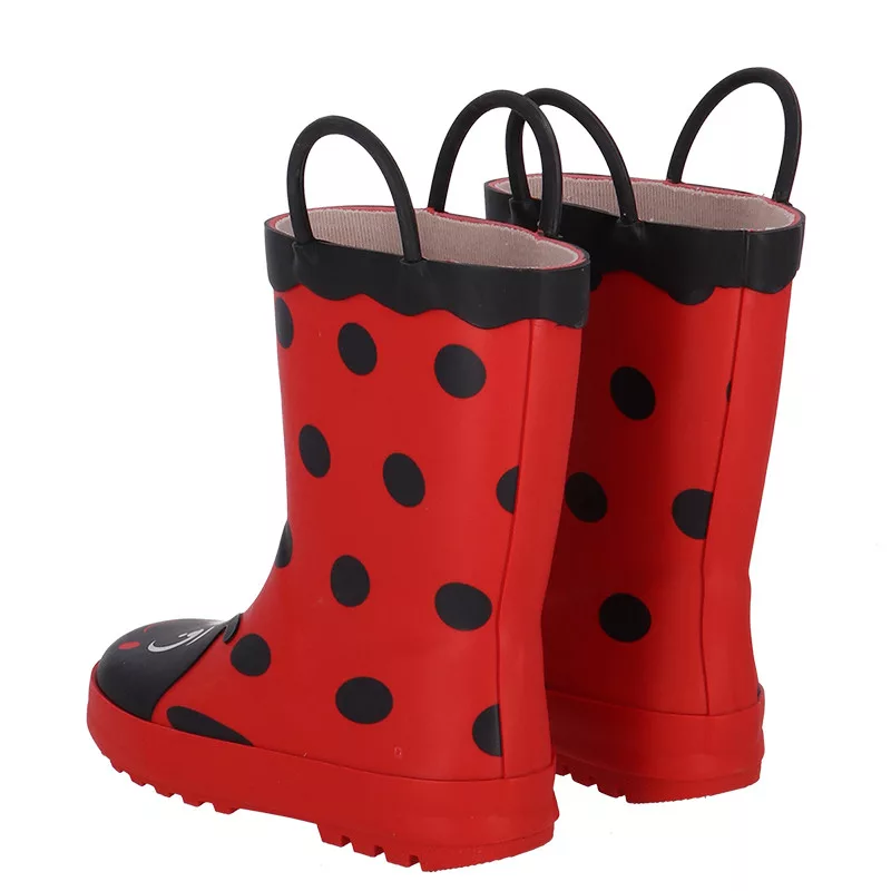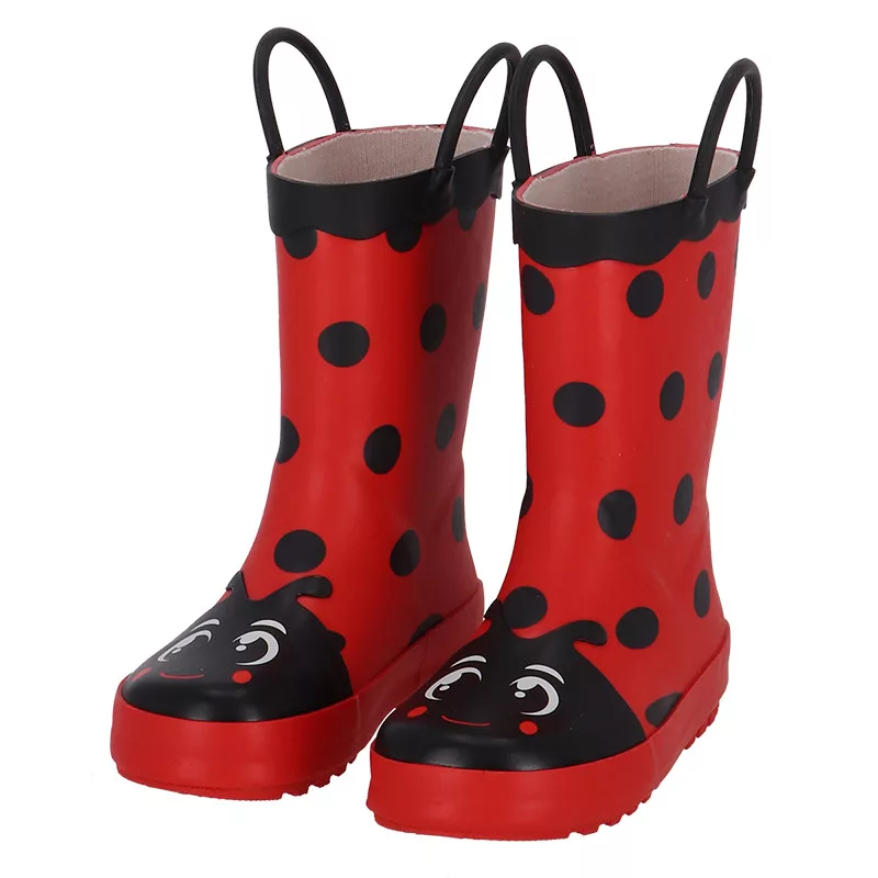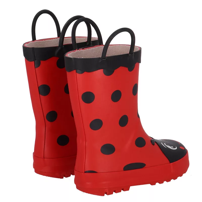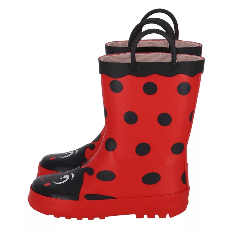 Katicás gyerek gumicsizma, 29-30-as méret. Ez a vidám, katicás gumicsizma tökéletes választás a kicsik számára, hogy kényelmesen és biztonságosan élvezhessék a szabadtéri játékokat. A csizmák praktikus fogantyúkkal rendelkeznek, amelyek megkönnyítik a fel- és levételt.